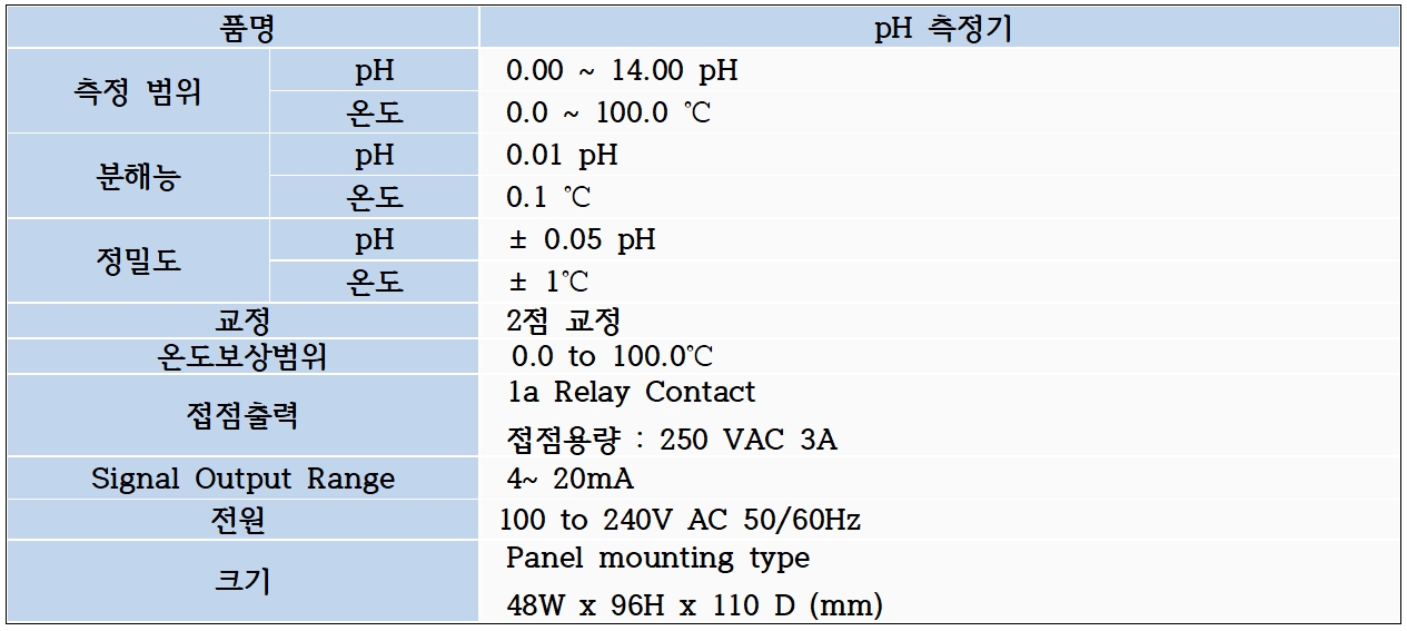 · 측정범위: pH 0.00 ~ 14.00 pH