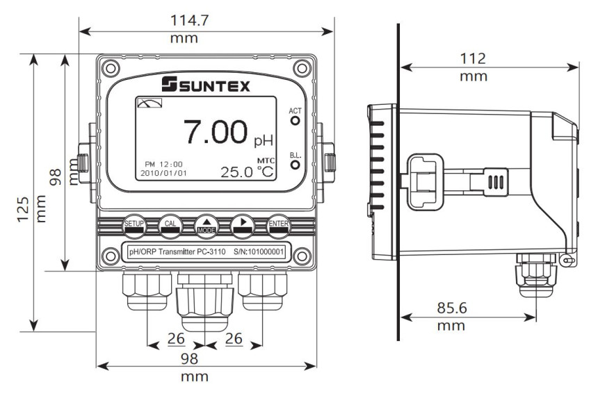 | 아날로그출력1 | Isolated DC 0/4~20mA corresponding to pH/ORP, max.500Ω | ||