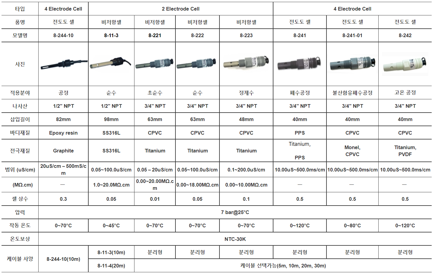 · 2셀 또는 4셀 전도도 전극 호환가능 합니다.