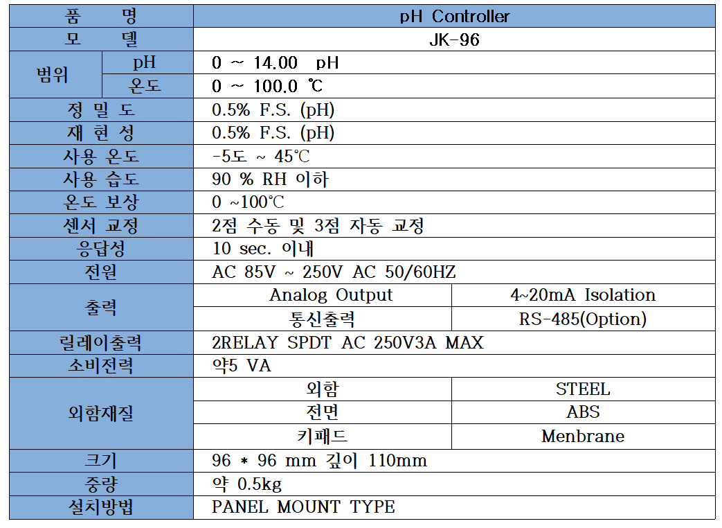 · 공업, 생물, 제약, 음료, 식료품현장의 수소이온농도를 지속적으로 측정하고 조절가능 하도록 설계